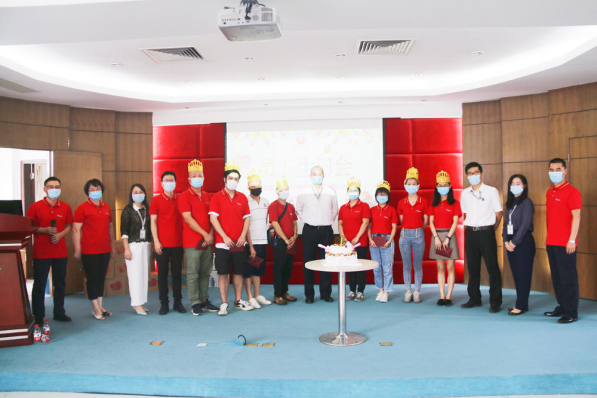 生日會上,大家共同祝賀5、6月期間生日的10位員工,領(lǐng)導(dǎo)將承載員工滿滿祝福和公司關(guān)愛的生日賀卡送到每一個(gè)壽星手中,大家在同唱生日歌、吹蠟燭、切蛋糕的歡快中其樂融融,幸福感縈繞其中。
